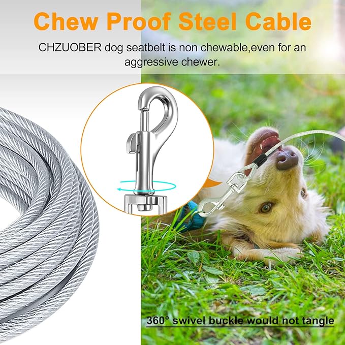 • CHEW PROOF & 2-In-1 DESIGN --- CHZUOBER Seat belt for dogs is designed with headrest restraint and car seat belt clip. This new version dog seat belts is made of steel cable which is extremely durable.Different with the fabric belt, the steel braided cord dog car leash is non chewable ,even for an aggressive chewer.