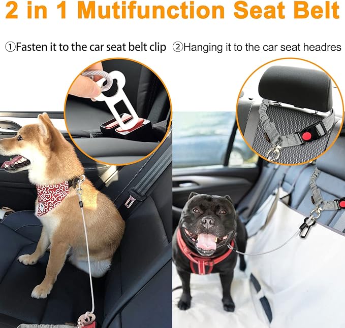 Chew Proof Dog Car Seat Belt, 2 in 1 Steel Cable Dog Car Accessories Headrest Restraint Dog Car Seatbelt for Medium Large Dogs Chewer Heavy Duty Dog Seatbelts for Cars Swivel Attach