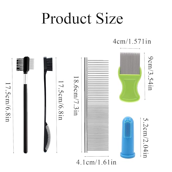 • 🐾 Good Combination: Our tear stain remover combs have 5 pieces, and each of them has different functions. And we have 1 piece silver long comb with wide and narrow teeth, 1 piece green comb with short teeth, 2 piece black plastic double combs, and 1blue piece finger shape soft comb. You can use them as you need.