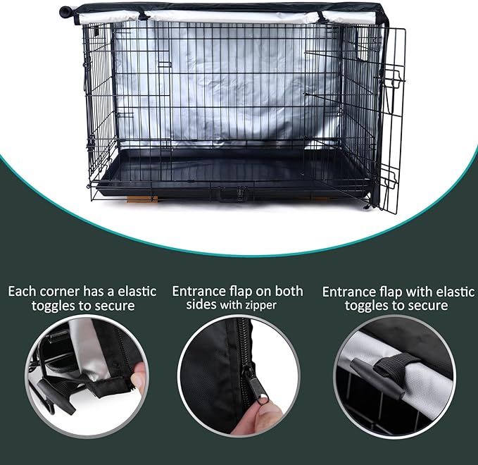 • Easy to use. Each corner has a elastic toggles to secure it to the crate. Meanwhile, flaps of front and side door are rolled up that secure with the same elastic toggles system