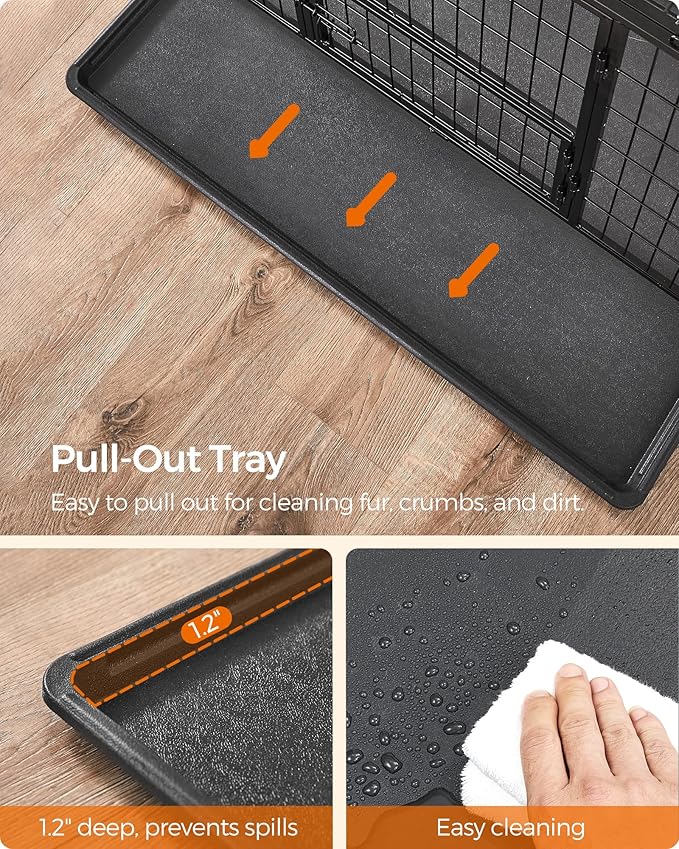 • [Easy to Clean] This dog cage comes with a pull-out tray so you can take it out for cleaning—easily keeping your fur friend’s place clean (it’ll thank you for that!)