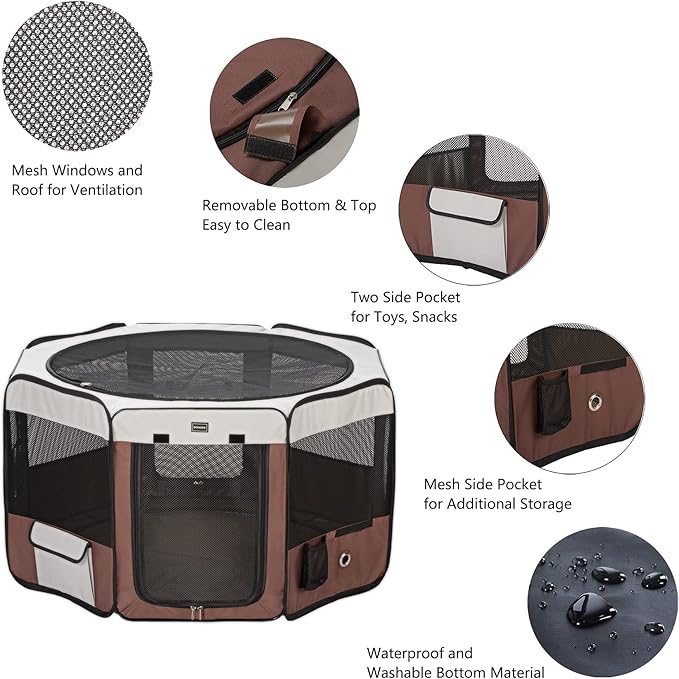 • 【QUALITY MATERIAL】Cat playpen with protected seams and reinforced corners ensure your pet's safety. Made from durable quality & water-resistant materials makes it a great play pen for small and meduim dogs.