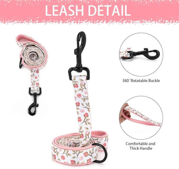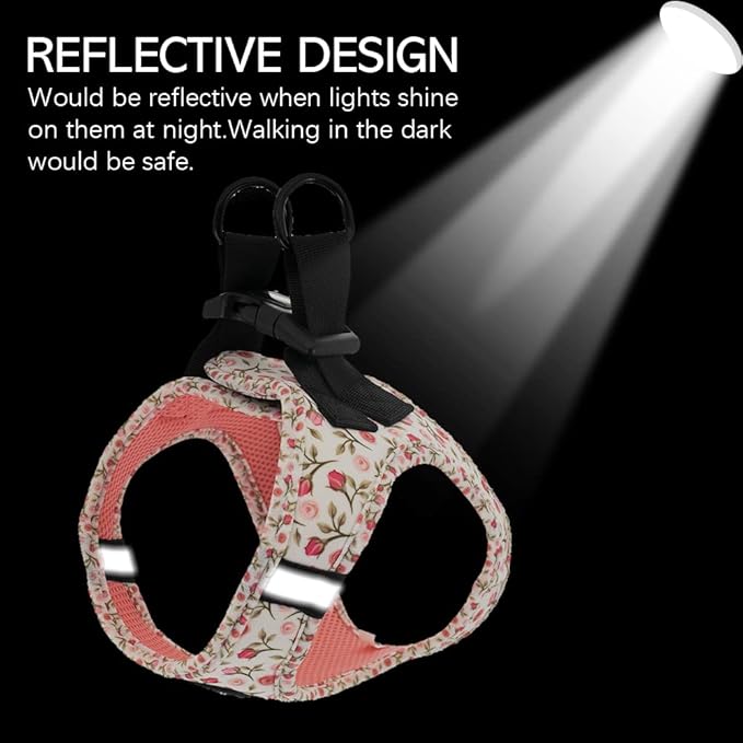 Step in Dog Harness and Leash Set, Reflective Dog Harness and Leash No Pull Dog Harness for Small Medium Large Dogs and Cats (XS(Neck:10-11.5",Chest:12.5-14.5"), RoseFlower)