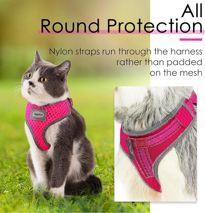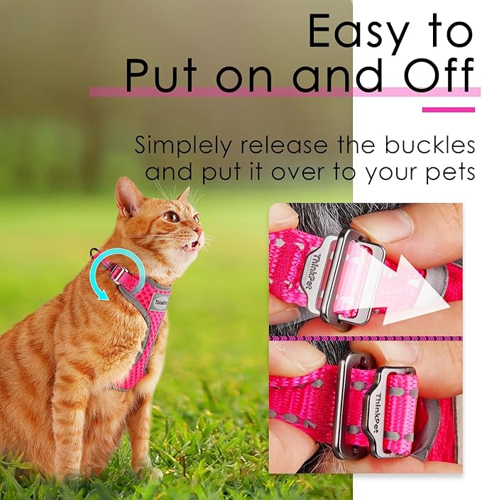 • ADJUSTABLE HARNESS: The Thinkpet's pet vest harness has 4 adjustable sliding straps, and both the neck and chest straps can be used to adjust the tightness, providing your pet with a suitable fit without worrying about falling off or choking. ▲ Please ensure there is space for two fingers between the harness and the pet's body.