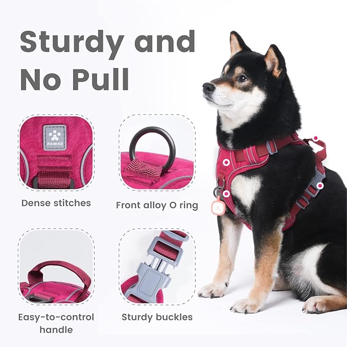 Pawaii Dog Harness for Small Dogs, Dog Harness with Pet ID Tag, No Choke Dog Harness, Adjustable Soft Padded Pet Vest with Easy Control Handle