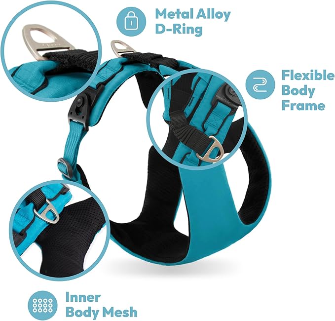 • Easy-Snap Rotational Buckles - rotates when your pup makes sudden turns which adds comfort and further complements the flexible body frame