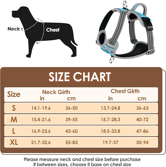 Lukovee No Pull Dog Harness, No Choke Adjustable Dog Harness with 2 Leash Clips and Easy Control Vertical Handle, Soft Padded Dog Vest for Medium and Large Dogs (Medium, Blue)
