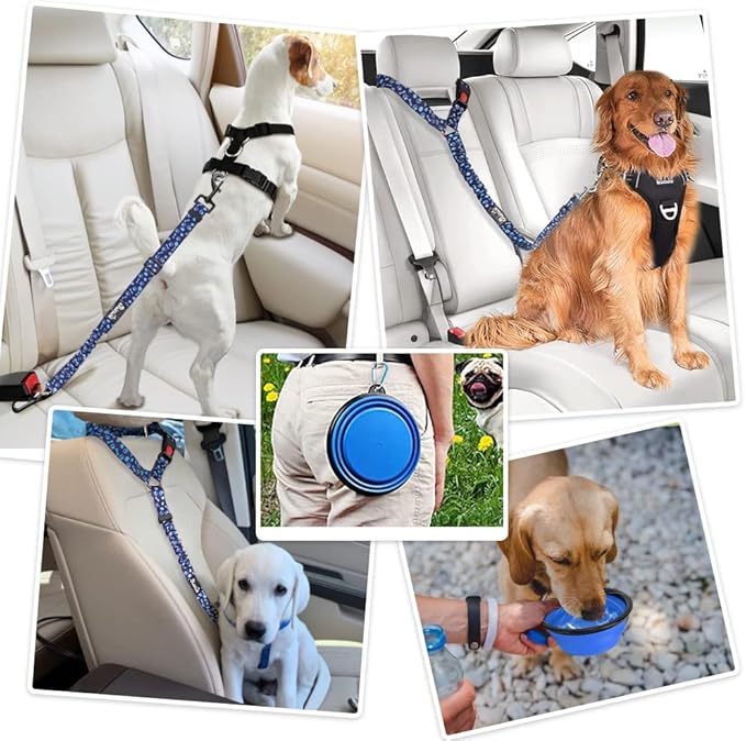 • Safety & Tangle-Free -- Our dog seat belt leash ensures your pet's safety within the vehicle, allowing you to focus on driving. The leash features a 360-degree rotating clip and is adjustable, which helps prevent tangles. This design enables your dog to sit, stand, lie down comfortably, or look out the window without the risk of jumping around inside the car.