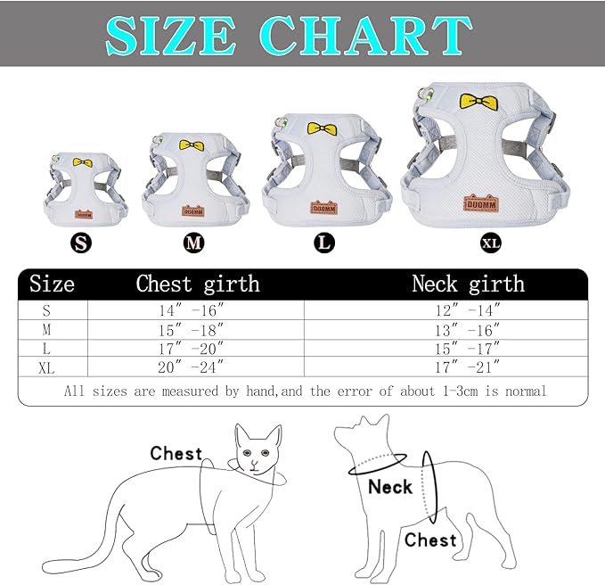 • Please refer to our size chart when buying for your pets, the size chart has detailed chest width and neck circumference range info for each size. We suggest that you pick the size that would give your pets 1-3 inches room to ensure it’s not too tight to wear.