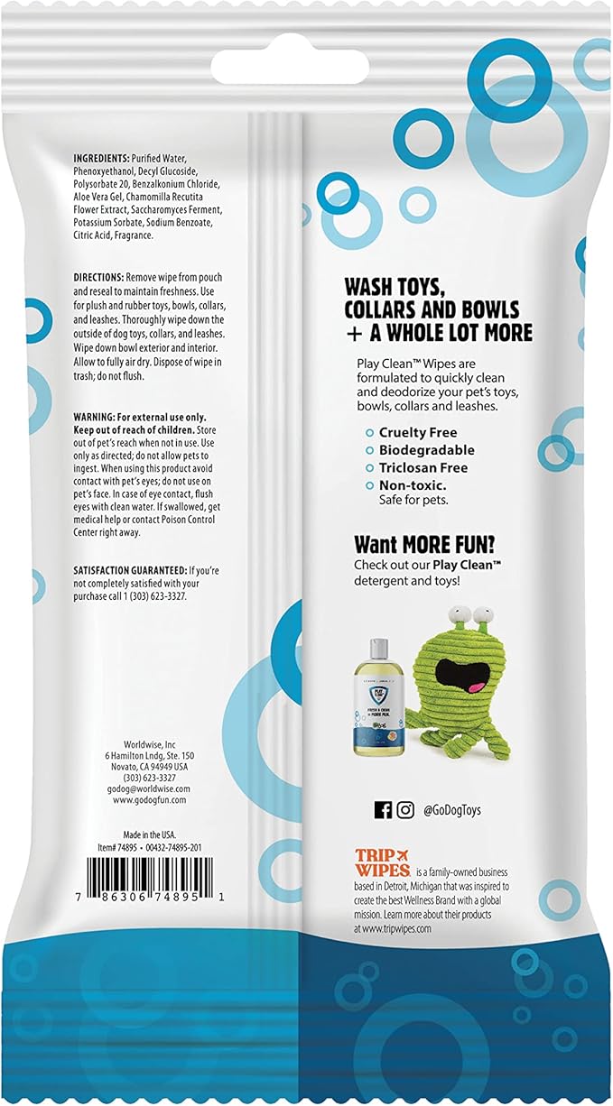 goDog PlayClean Pet Safe Multipurpose Pet Toy Wipes - 25 Count/1 Pack