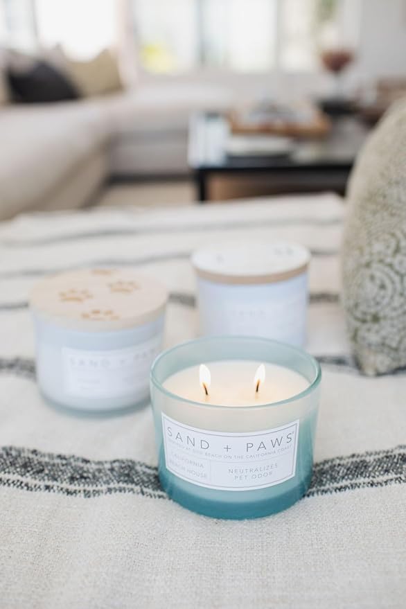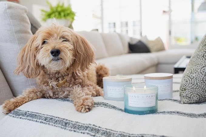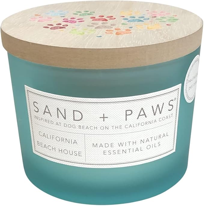 Sand + Paws Scented Candle - California Beach House –Luxurious Air Freshening Jar Candle Neutralize pet Odors and Enhance Home décor – 100% Cotton Lead-Free wicks-12oz