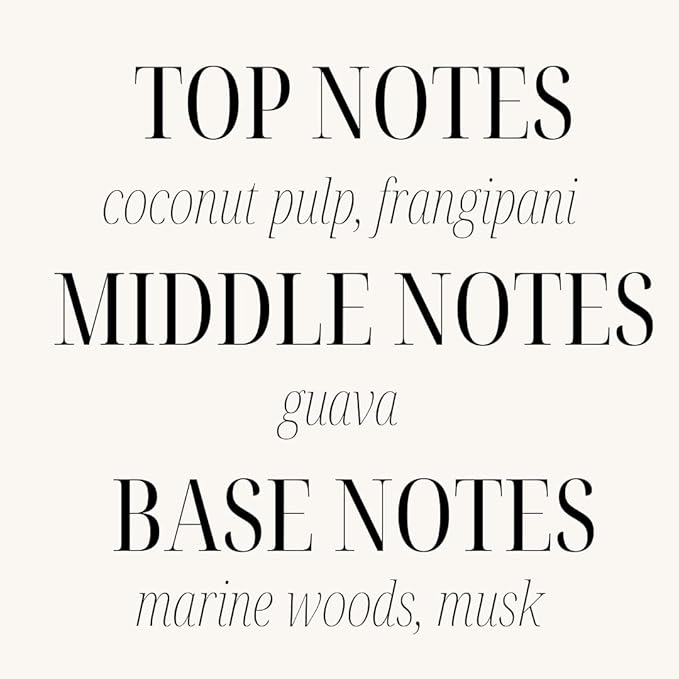 • Top notes: coconut pulp and frangipani, Middle notes: guava, Base notes: musk
