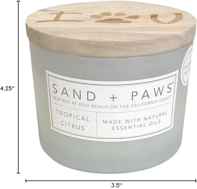 Sand + Paws Scented Candle - Tropical Citrus - Additional Scents and Sizes –Luxurious Air Freshening Jar Candles Neutralize pet Odors and Enhance Home décor – 100% Cotton Lead-Free Wicks - 12 oz