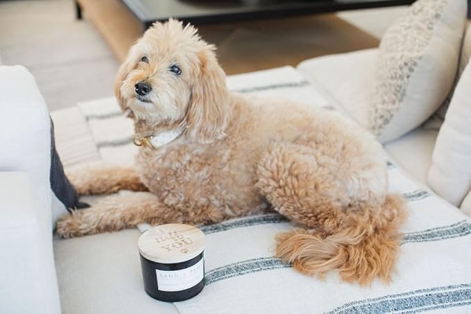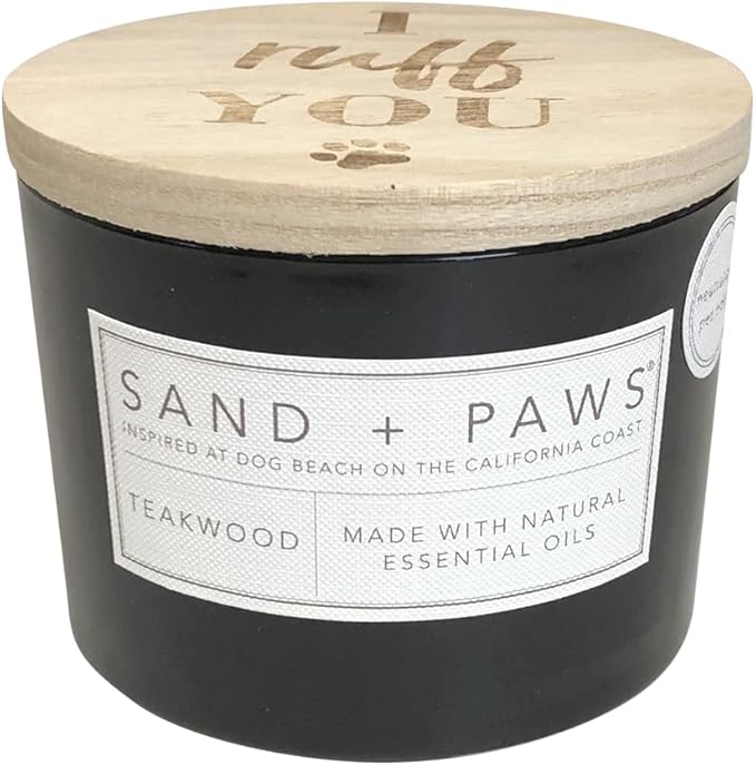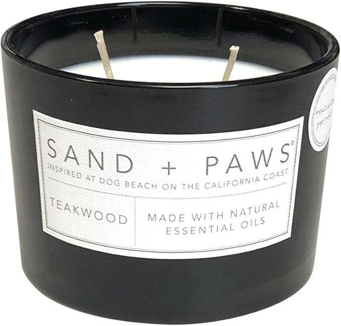 Sand + Paws Scented Candle - Teakwood - Additional Scents and Sizes –Luxurious Air Freshening Jar Candles Neutralize pet Odors and Enhance Home décor – 100% Cotton Lead-Free Wicks - 12 oz