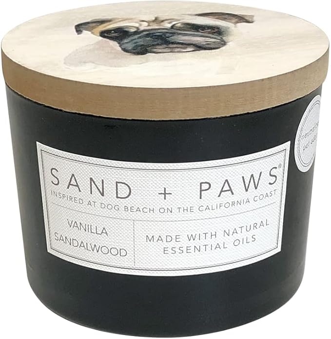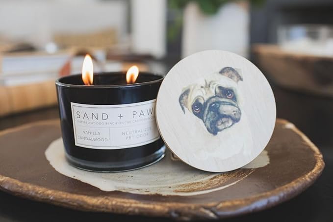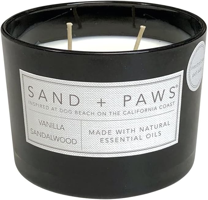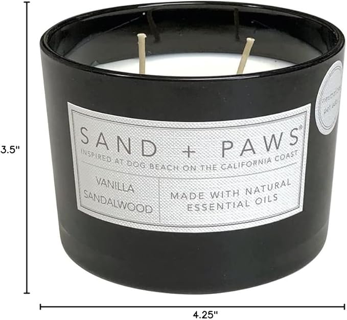 Sand + Paws Scented Candle - Vanilla Sandalwood –Luxurious Air Freshening Jar Candles Neutralize pet Odors and Enhance Home décor – 100% Cotton Lead-Free Wicks - 12 oz
