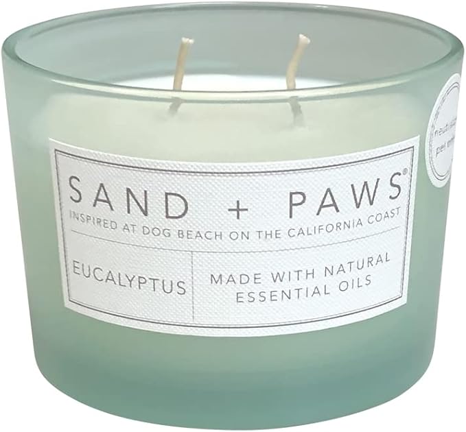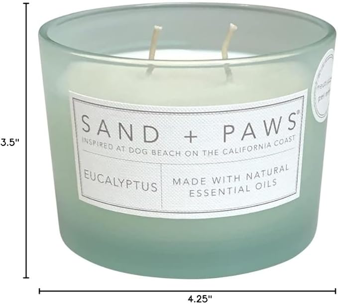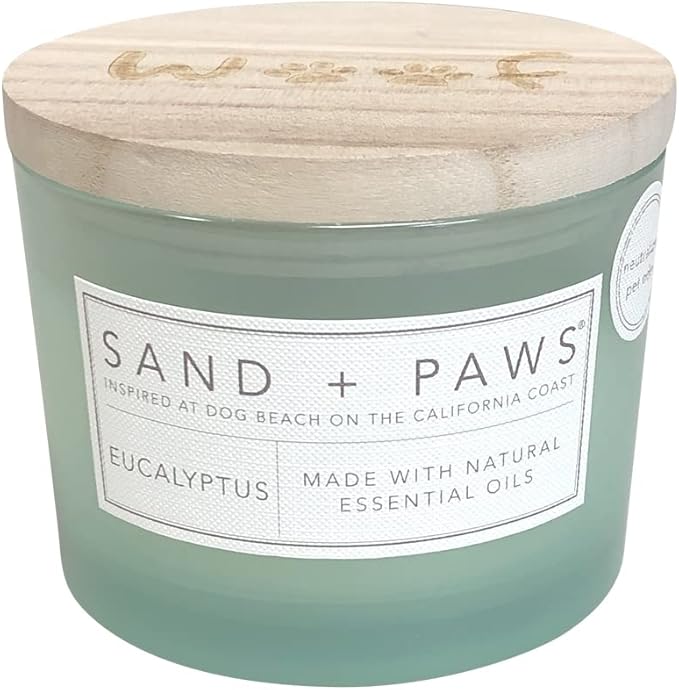 Sand + Paws Scented Candle - Eucalyptus - Additional Scents and Sizes –Luxurious Air Freshening Jar Candles Neutralize pet Odors and Enhance Home décor – 100% Cotton Lead-Free Wicks - 12 oz