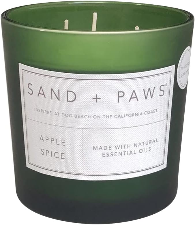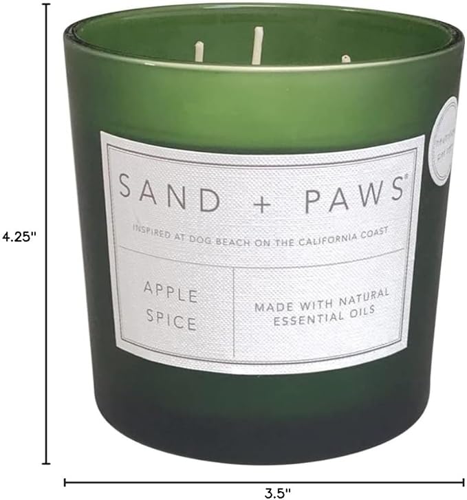 Sand + Paws Scented Candle - Apple Spice - Additional Scents and Sizes –Luxurious Air Freshening Jar Candles Neutralize pet Odors and Enhance Home décor – 100% Cotton Lead-Free Wicks - 21 oz