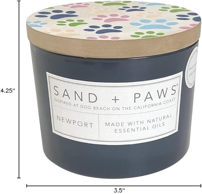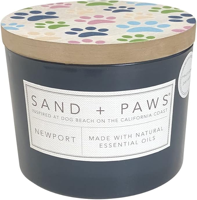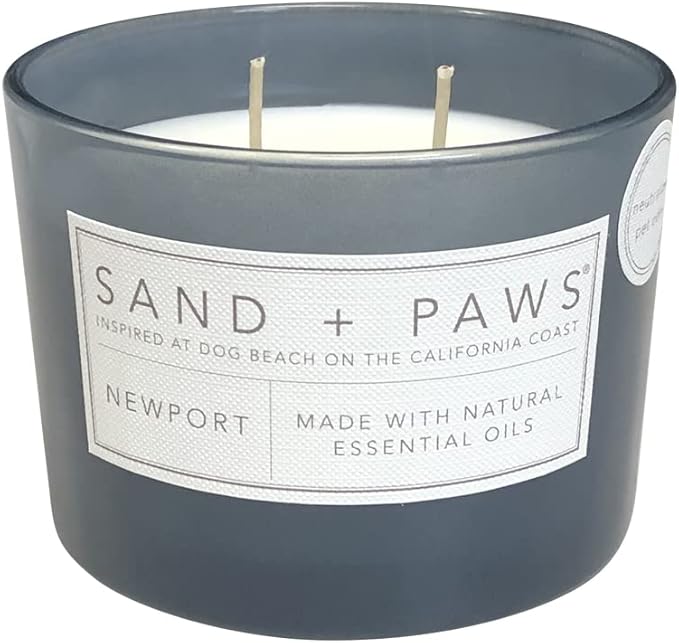 Sand + Paws Scented Candle - Newport - Additional Scents and Sizes –Luxurious Air Freshening Jar Candles Neutralize pet Odors and Enhance Home décor – 100% Cotton Lead-Free Wicks - 12 oz