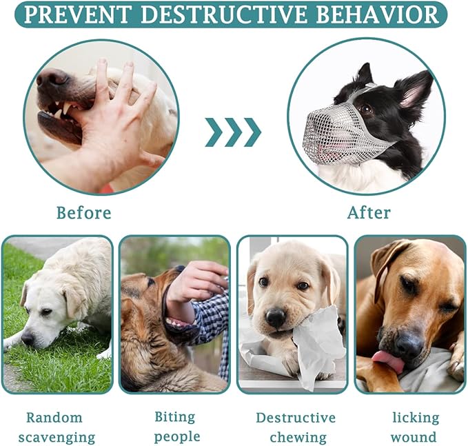 - Humane Dog Muzzle: A soft full-covered mesh panel makes the muzzle comfortable to wear, also allows your dog to breathe, and drink, and provides the best pet breathing and ventilation as normal while preventing chewing and biting