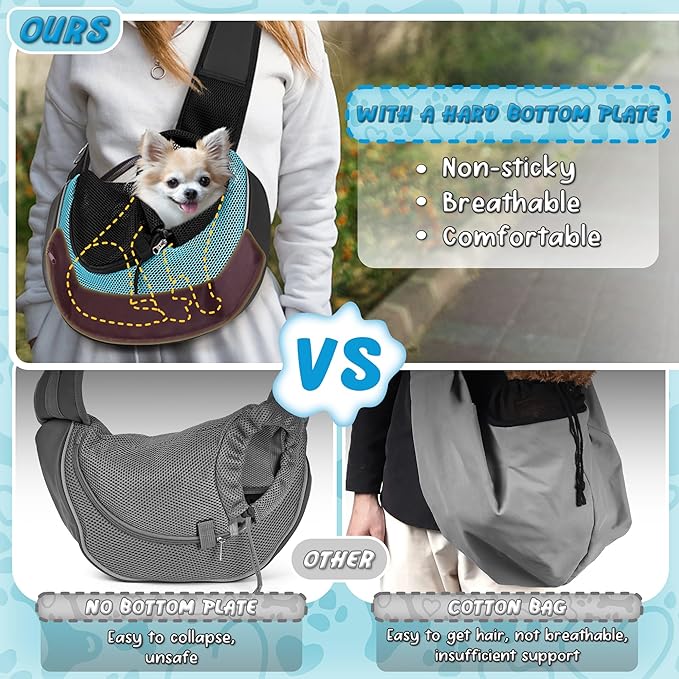 WOYYHO Dog Sling Carrier - Adjustable Strap,Hard Bottom,Large Zip Pocket,Breathable Mesh - Suitable for Puppies Outdoor Travel (Cyan S)