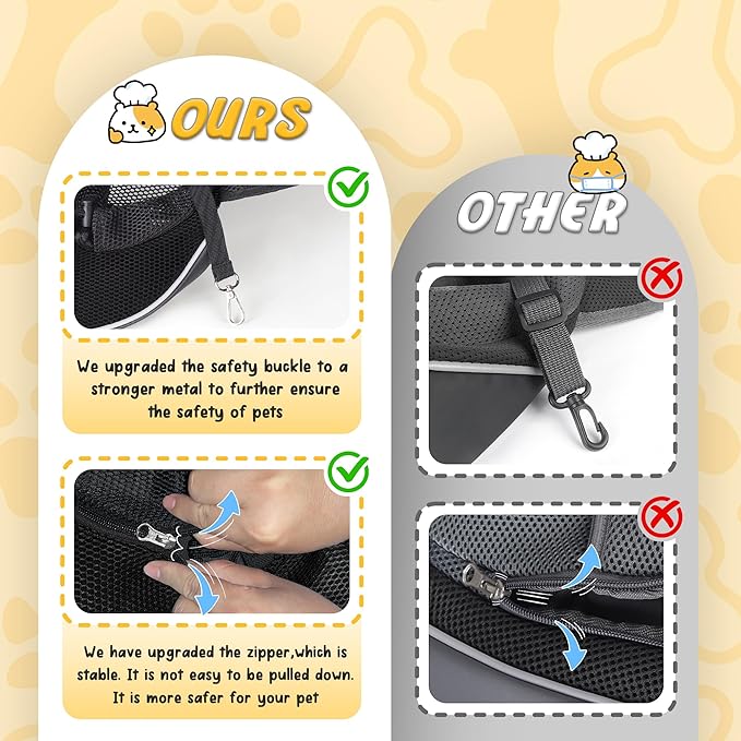 • Multi-safety Design: WOYYHO pet sling carrier has a metal safety buckle, prevents pets from jumping out, magic stick to avoid zips from sliding, the unique anti-pinch design can prevent pet hair from being caught by the zipper, and the reflective strip design makes it safer for you and your pets to go out at night