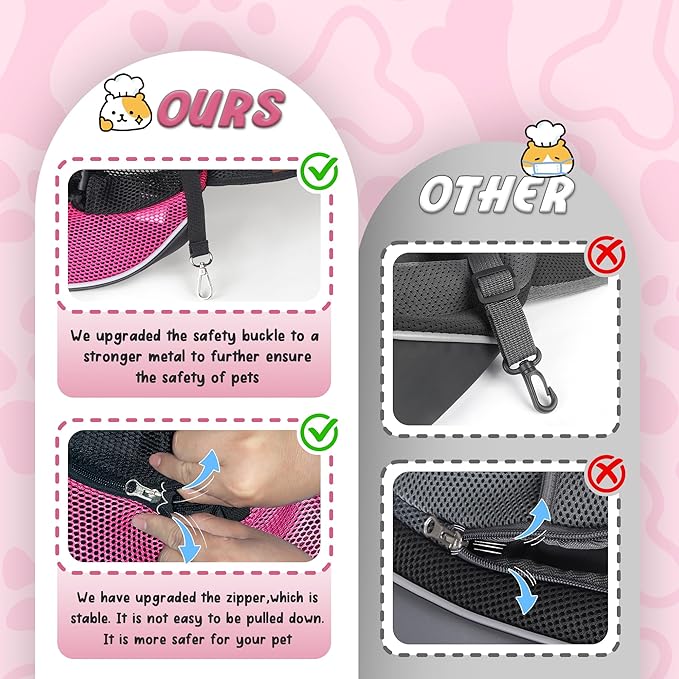 • Multi-safety Design: WOYYHO pet sling carrier has a metal safety buckle, prevents pets from jumping out, magic stick to avoid zips from sliding, the unique anti-pinch design can prevent pet hair from being caught by the zipper, and the reflective strip design makes it safer for you and your pets to go out at night