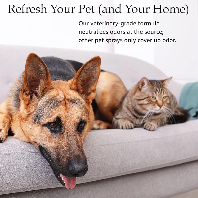 • Cat and Dog Deodorant: Target and eliminate source of pet odor with pleasant Sweet Pea & Vanilla scent infusion. Natural deodorizing formula combats odors hiding in thick fur or skin folds.