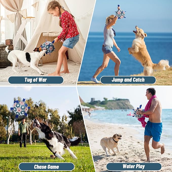 • Lightweight Dog Water Toys: Adopted the lightweight, buoyant design, QDAN soccer ball for dogs can be played in the pool, lake and beach as well. The straps of a dog soccer ball is meant to keep your dog entertained, active and help human beings and dogs stay engaged