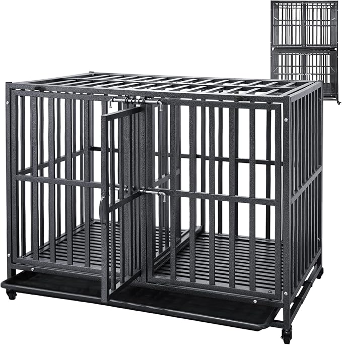 • 【STACKABLE DOG KENNELS】This dog cage has a stackable feature, so if you buy more than one heavy duty dog crate you can stack them to help you save more space. Note that the same model of dog kennel is required for stacking.