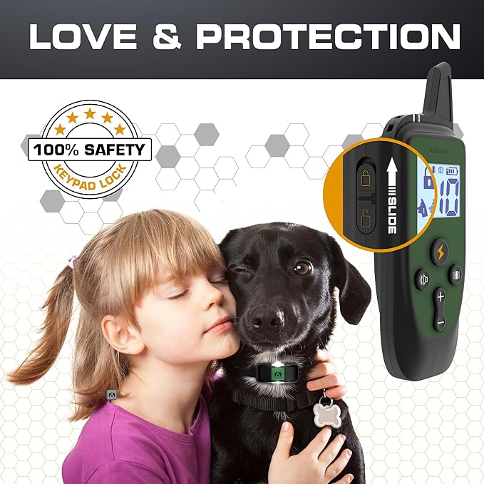 • Safe Training Collar For Dogs: Decrease accidental shock by sliding the security keypad lock to avoid misoperation. Award-winning dog training & behavior aids