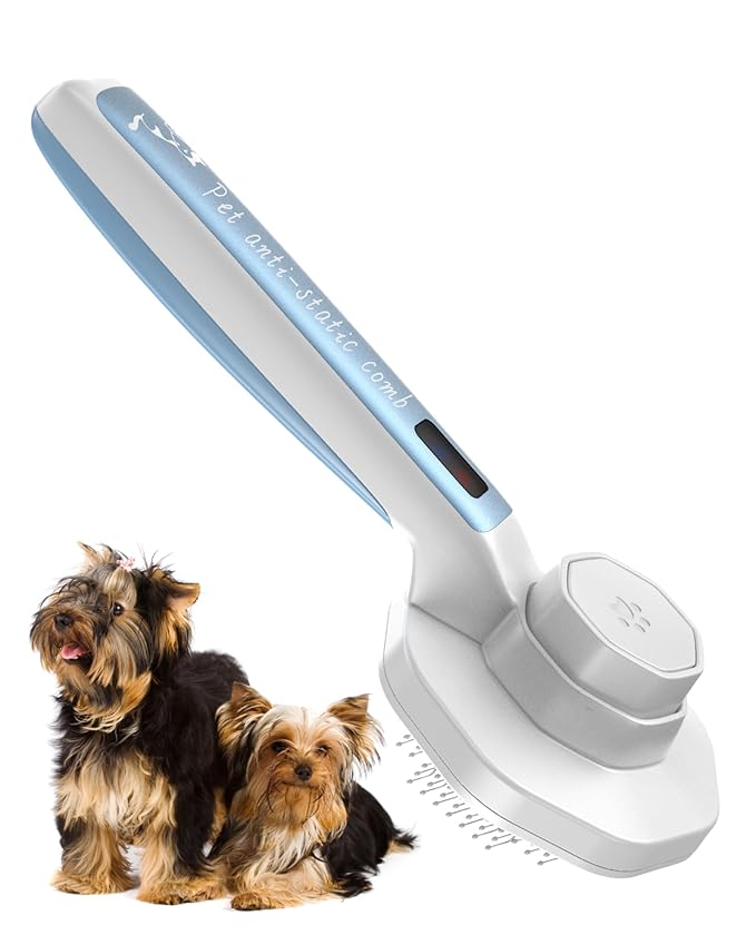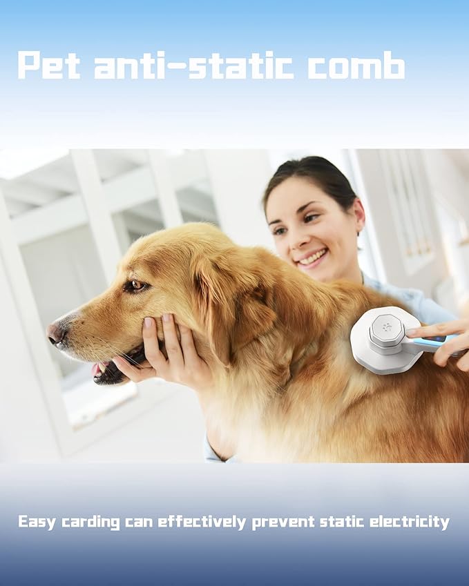 Self-Cleaning Pet Brush for Dog and Cat Long Hair - Static Electricity Eliminator Beauty Product (Blue)