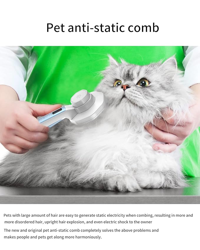 • 【Practical electrostatic function 】Static electricity is generated in a particularly dry environment. For example, in autumn and winter, some people who keep long haired pets will have a particularly obvious feeling. In dry weather, long haired pets will have hair explosion. At this time, this anti-static comb can effectively eliminate static electricity, and the static indicator light will be lit because of static electricity, which is why this light does not need charging or batteries .