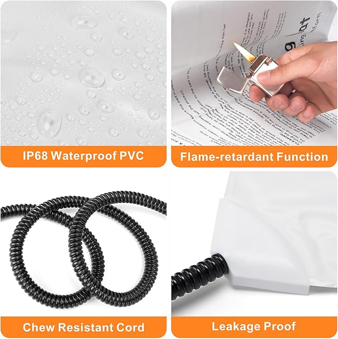 • 【Chew Resistant Cord Protection】In order to prevent dogs from biting the wire and getting electrocuted,the wire is adopts wrap-around bendable stainless steel and anti-bite hose, no need to worry about leakage, keep your pet safe. 83 inches super long length steel cord, don't worry about not enough length while the electrical outlet too far.