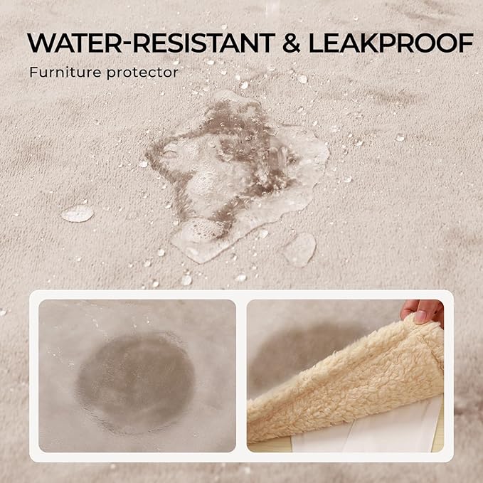 • TRIPLE LAYERS DESIGN - Soft thick fleece on one side and plush sherpa backing on the other to keep your pets comfy, warm and dry.Internal waterproof lining provides defense and stops liquids from seeping through. NOTE: The surface of the fiber itself is not waterproof!