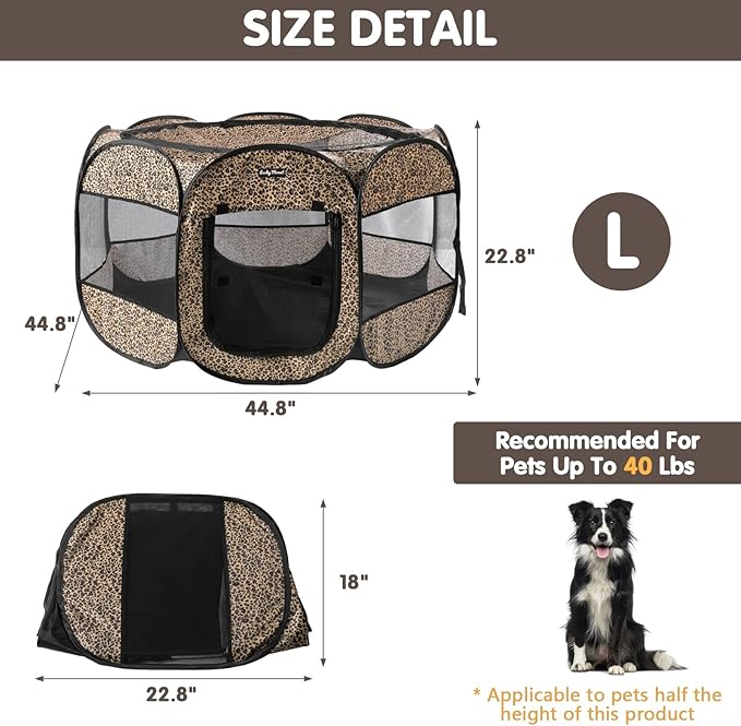 • 【Easy Assemble & Safe】The pop-up design makes quick set-up, and the portable playpen comes with small metal stakes ensures your pet's safety when playing