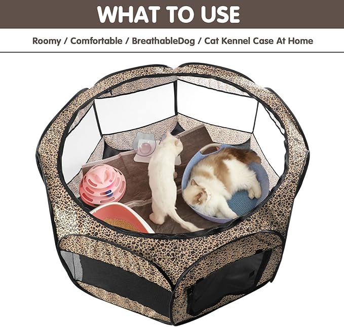 • 【High Quality】Our kitten and puppy play pen is made of scratch-resistant 600D Oxford cloth and high-grade thick mesh, durable and waterproof material. It designs 8 side-panels to provide a spacious interior for your pet to play, nap, or isolate