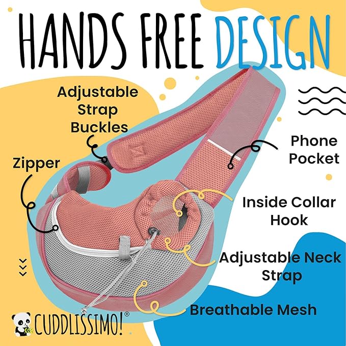 • 🐶 PERFECT FOR MEDIUM PETS - Cuddlissimo! pet sling carrier is designed for medium sized dogs or cats, up to 12 pounds in weight. This dog sling has a padded bottom, and the neck opening is fully adjustable.