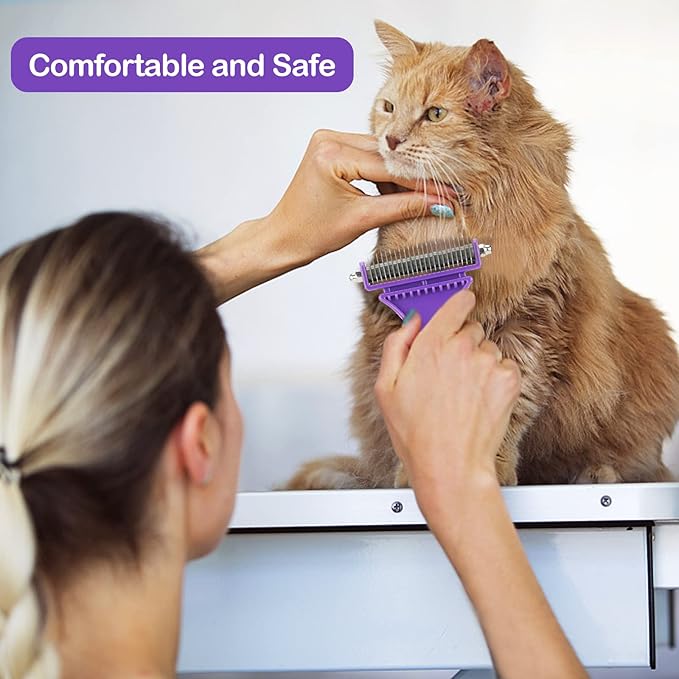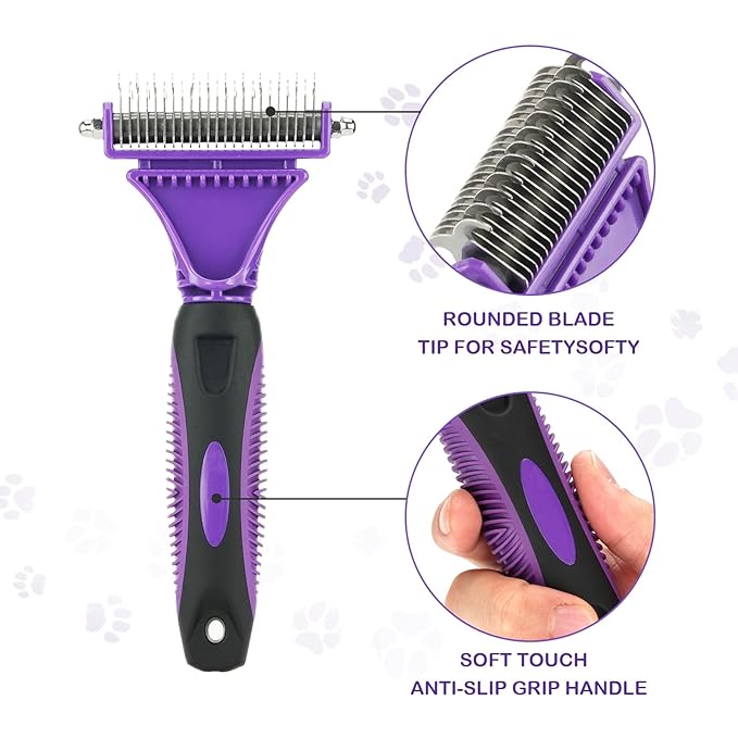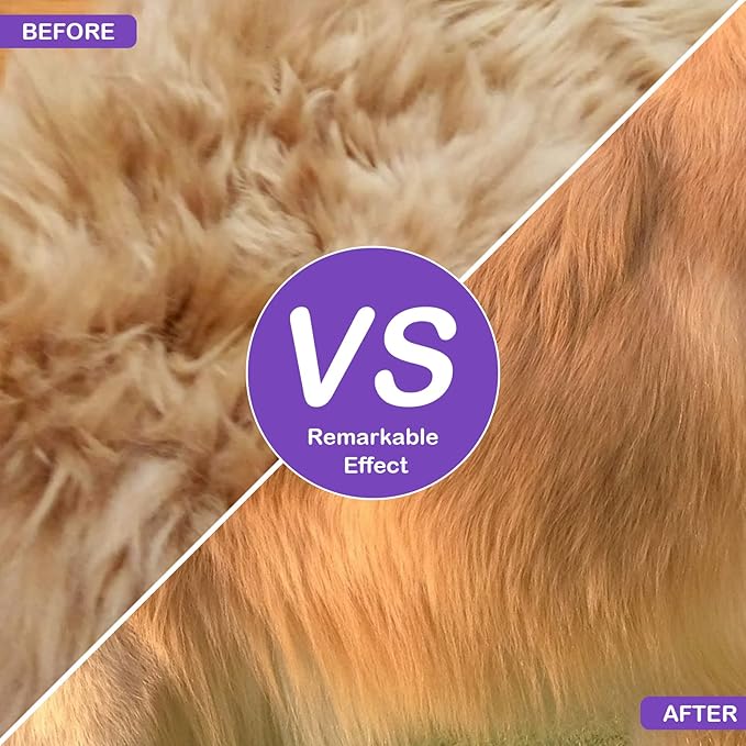 • Effective Dehedding Tool: This undercoat rake gently removes loose hair, and eliminates tangles, knots, dander and trapped dirt.Perfect solution for dogs and cats with thick fur or dense double coat care.
