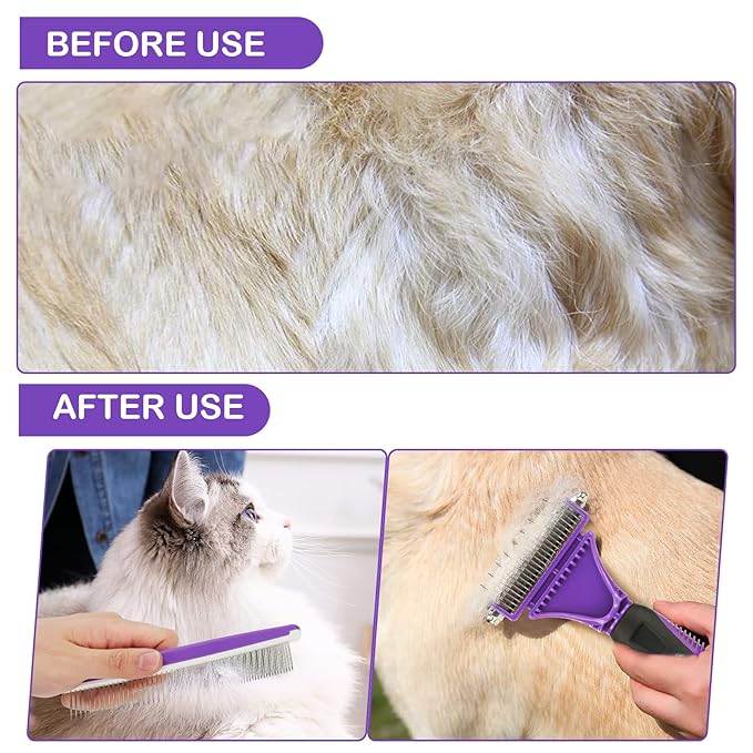 • Dual-Sided Design: The dual-sided 12-23 teeth undercoat rake will be your best choice to cut even the longest and densest coats of dogs, cats, rabbits, long-haired pets. The comb give you the best result of de-matting for any pet with long hair. Even the longest and densest coats of dogs, cats, rabbits, long haired breed pets.