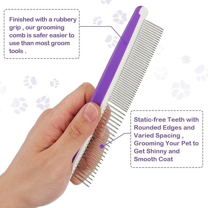 • Comfortable as well: Designed to support comfort & convenience! Lightweight and Non-Slip rubber handle for comfortable holding and stability. A grooming comb with stainless steel pin teeth doubles as a wide-tooth comb & a fine-tooth comb is an essential comb that can keep your pet clean and healthy. The non-slip and ergonomic designed handles offer rapid effortless cuts. Our handle is comfortable no matter how you hold it.