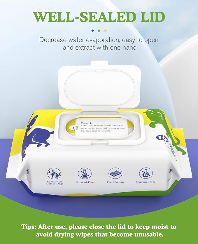 • Safe Material: Made of high quality material and unscented, alcohol-free, fragrance-free, pearl pattern, balanced PH, safe and gentle, suitable for dogs and cats. Our pet grooming wipes are safe for your pet's daily use.