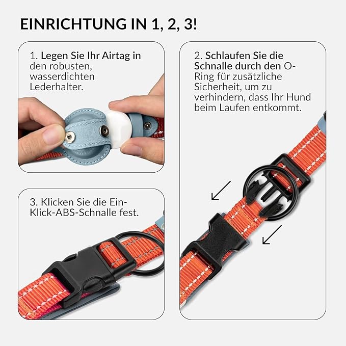 • Designed for the Apple AirTag - This dog tracking collar was designed to fit the Apple AirTag. Our airtag dog collar has a double snap and small opening to ensure your airtag's placement. Plus, the air tag collar has reflective stitching for nighttime walks.