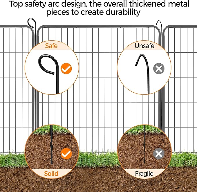 • Heavy Duty: Recommend setting this playpen on flat ground. Our sturdy 2-panel dog playpen is made of electrophoresis metal panels and stakes, anti-oxidated 0.6 x 0.6’’ square tubes ensuring safe and long-term use no matter indoor or outdoor