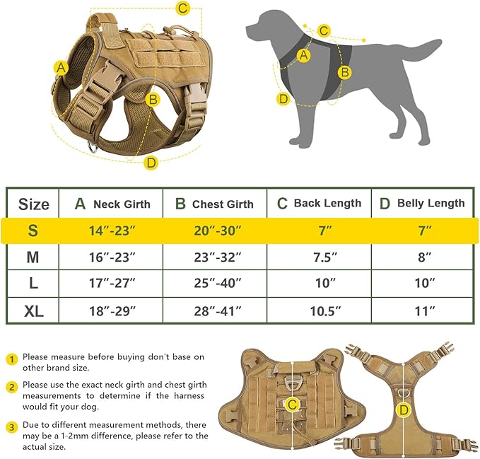 • Size Instruction: Dog vest harnesses are available in S, M, L, and XL 4 sizes for your choice. Suitable for professional K9 training, hiking, and walking for German Shepherds, Labrador, Doberman, Retrievers, etc. Small neck girth:14"-23"; Chest girth:20"-30"; Back length:7". Please choose the right size based on the size chart