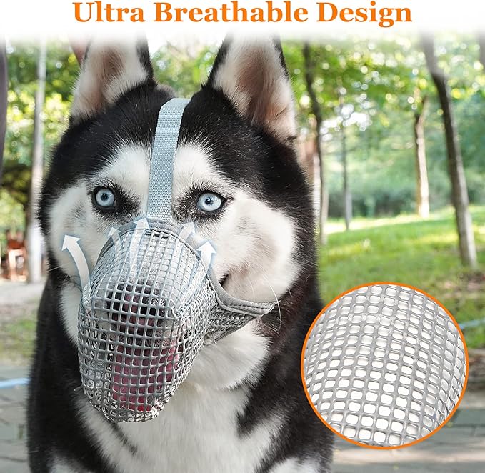 Crazy Felix Dog Muzzle, Soft Mesh Muzzle for Small Medium Large Dogs Labrador German Shepherd, Breathable Adjustable Muzzles for Biting, Chewing, and Scavenging, Allows Panting and Drinking(Grey,S)