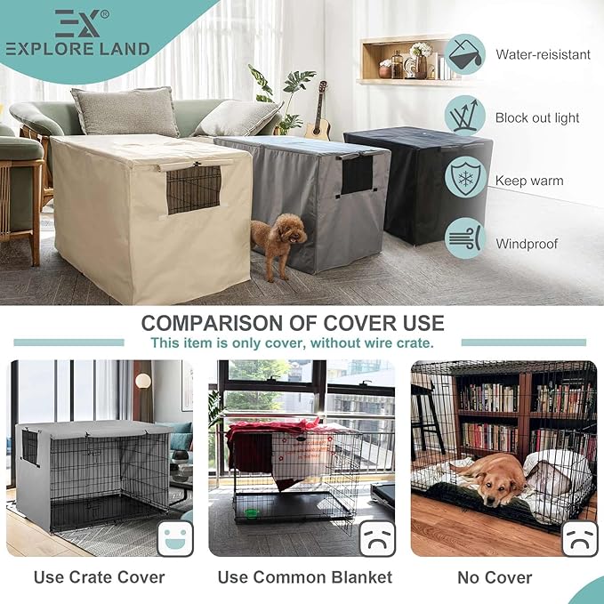 Explore Land 54 inch Gray Dog Crate Cover Bundle with 53 inch Dog Bed Cover
