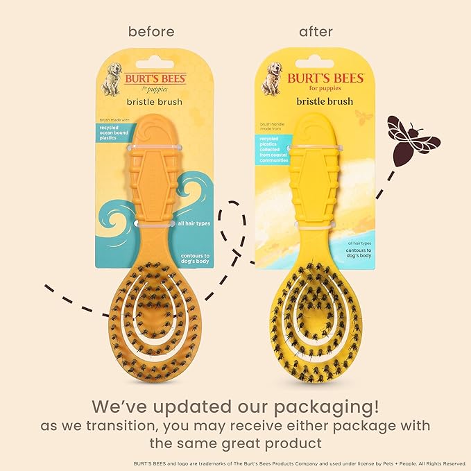 Burt's Bees for Pets Small Bristle Brush with Natural Boar’s Hair & Nylon | Handle Made from Recycled Plastics Collected from Coastal Communities | De-Shedding Eco Friendly Dog Grooming Brush