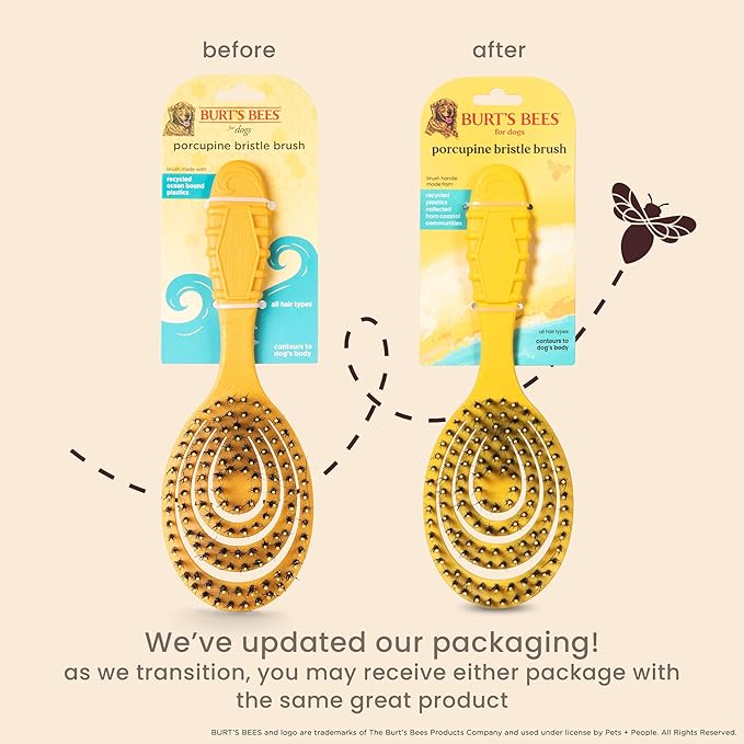 Burt's Bees for Pets Porcupine Bristle Brush, Large Dogs Hair Grooming Tool, Flex Technology, Recycled Plastics Handle, 9 Inches