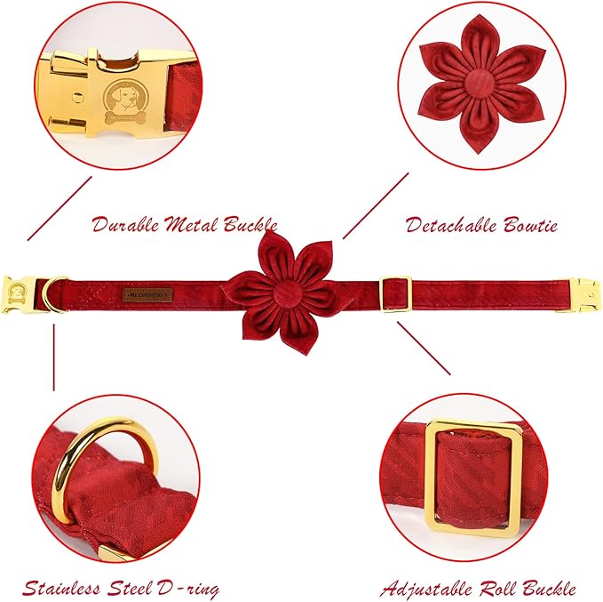 • Quick Release Metal Buckle: Metal dog collar with flower is durable and worn. Dog collar bow tie with safety snap-on metal buckle makes you can quickly and easily remove your dog.