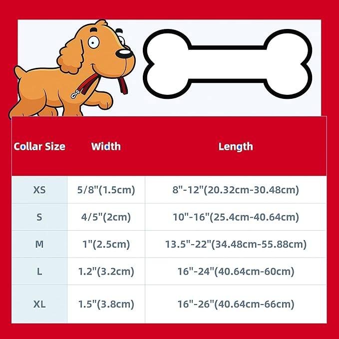 • Durable Dog Collar Size: Adjustable flower dog collar for large dogs & dog collar for small dogs. Collar for dog size-XS(5/8"Wid*8"~12"Len), S(4/5"Wid*10"~16"Len), M(1"Wid*13.5"~22"Len), L(1.2"WId*16"~24"Len), XL(1.5"Wid*16"-26"Len).